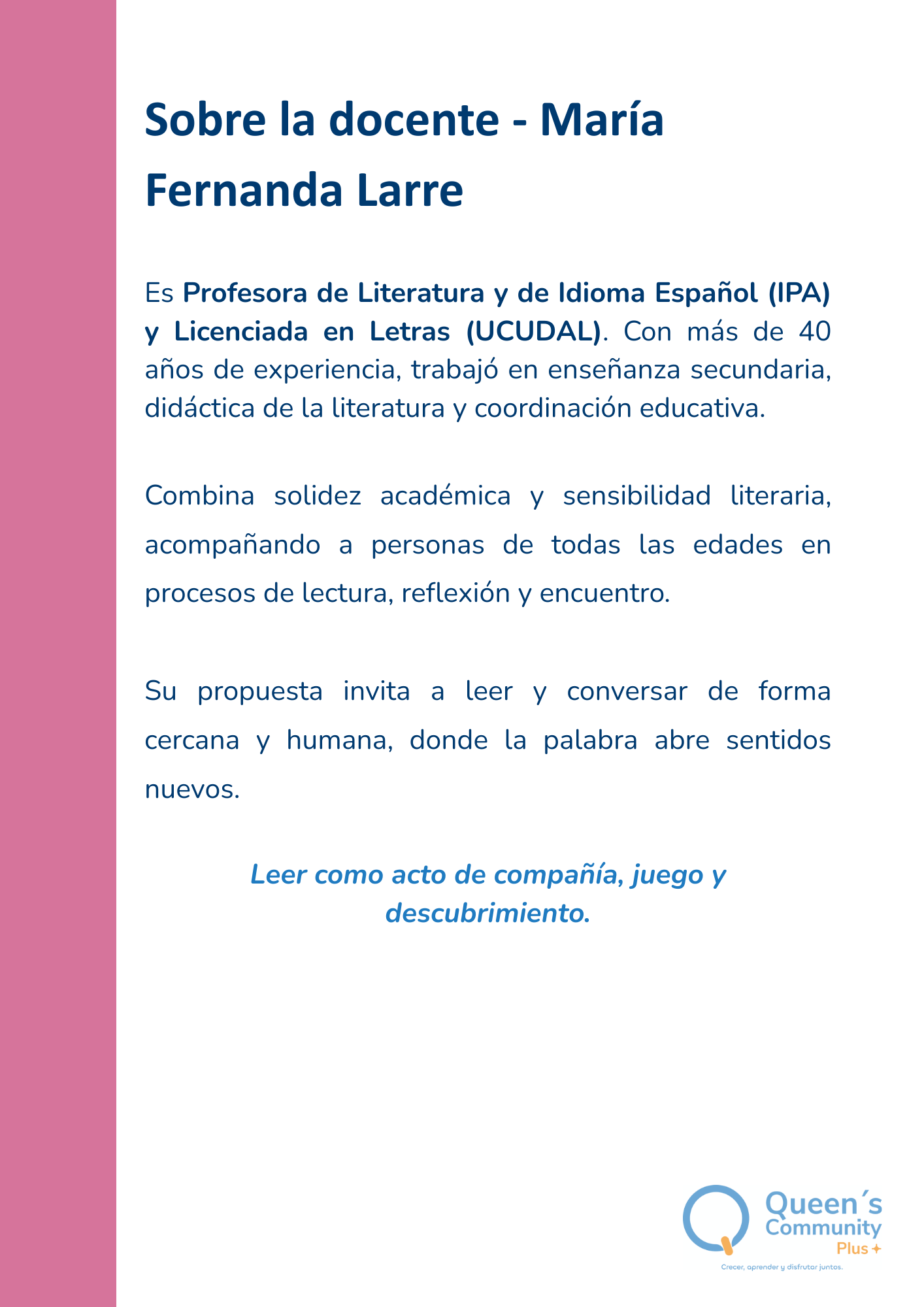 Descripción: Descubrí el placer de leer, conversar y encontrarse con la palabra en un espacio cálido y humano, sin importar tu experiencia.